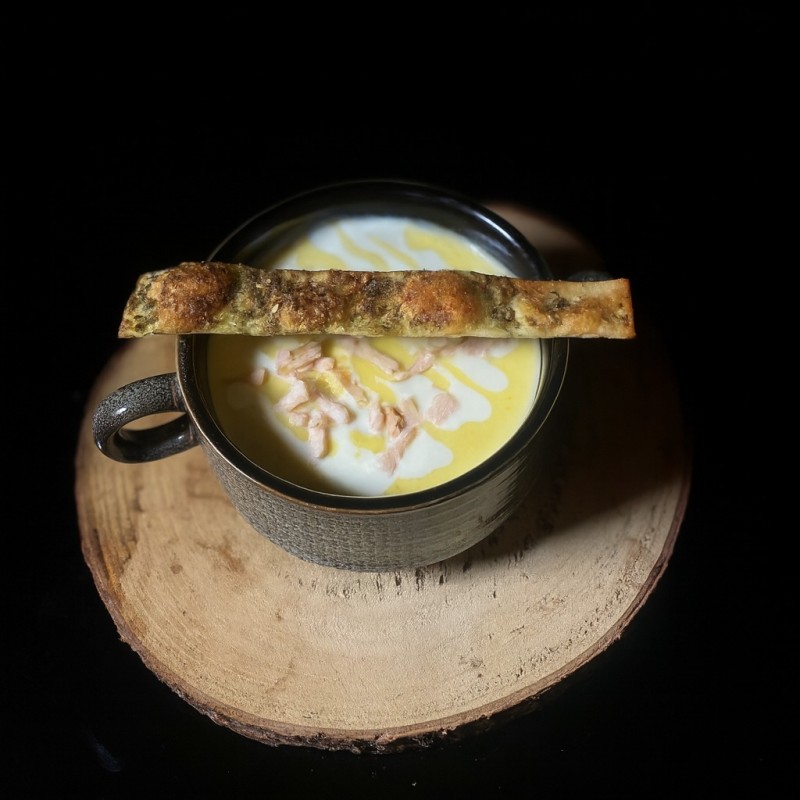شوربه الذره تقدم علي الطريقه الفرنسيه مع حبات الذره واللوز المحمص وقطع الدجاج الطازجه بنكهه الكريمة