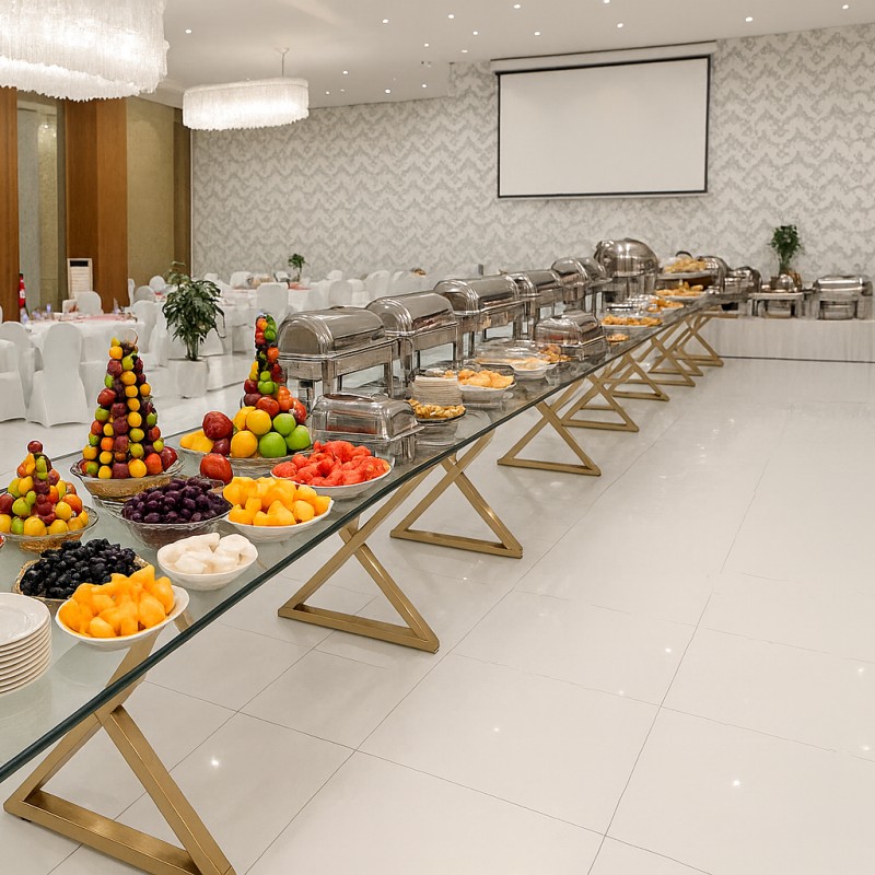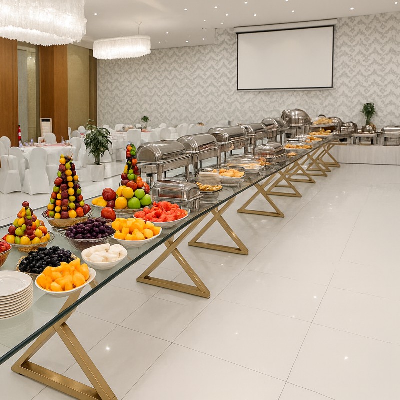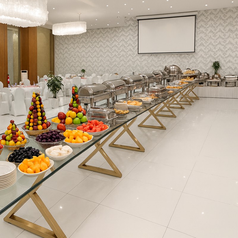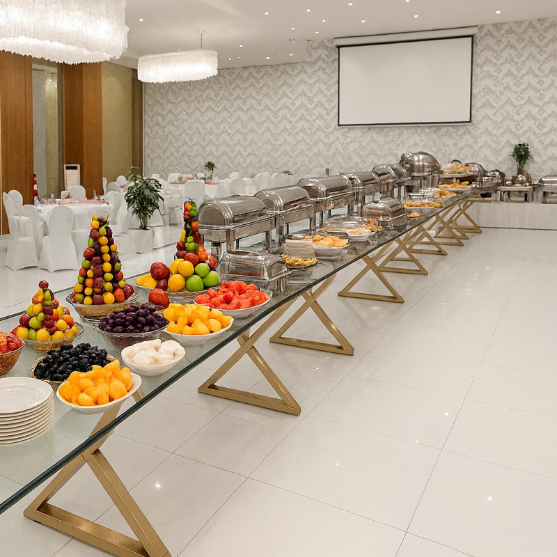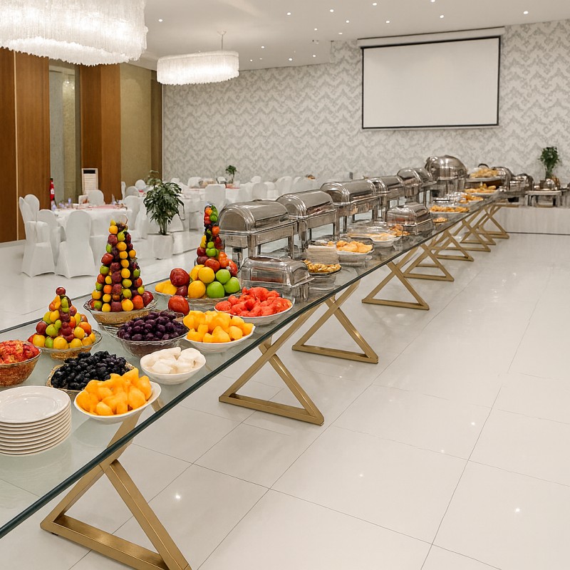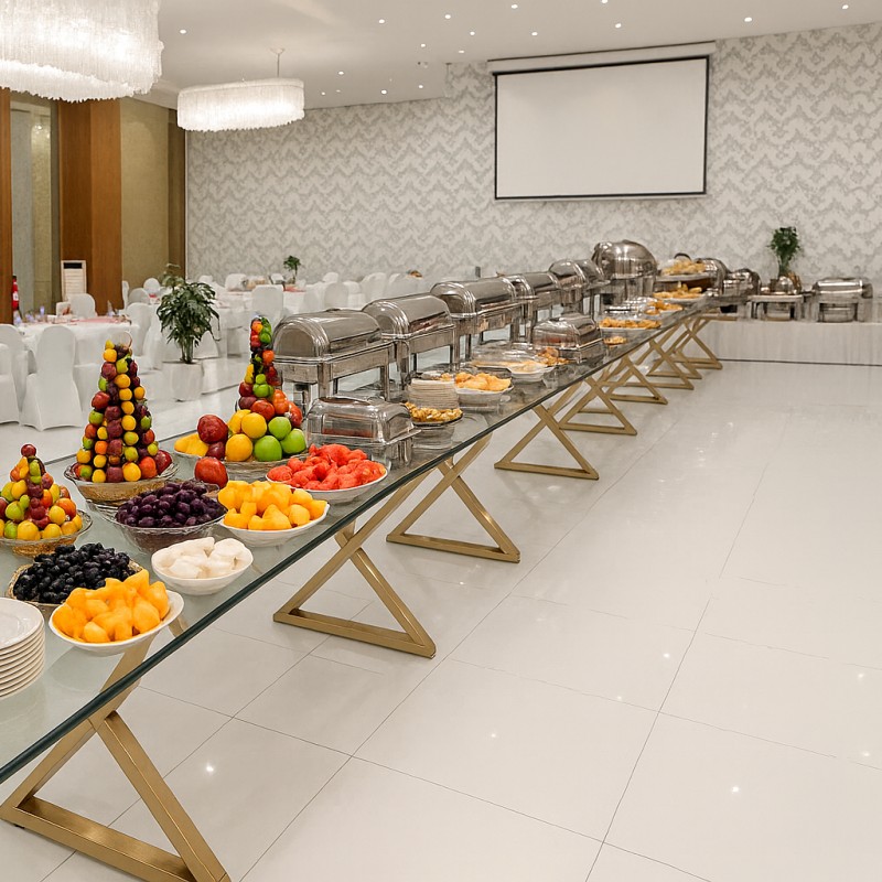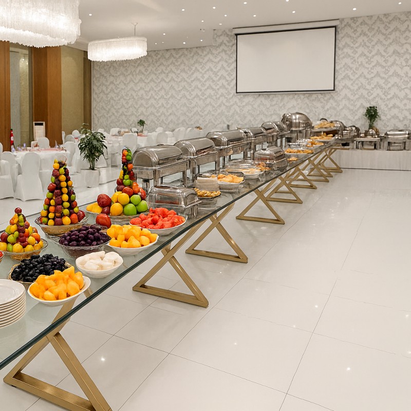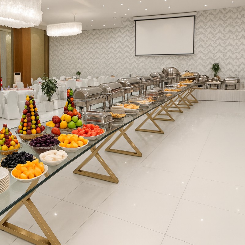 4 طبق رئيسي + 3 مقبلات باردة +1 مقبلات ساخنة +حلويات غربي وشرقي + مشروبات عدد الاشخاص ( مياة + مشروبات غازية )