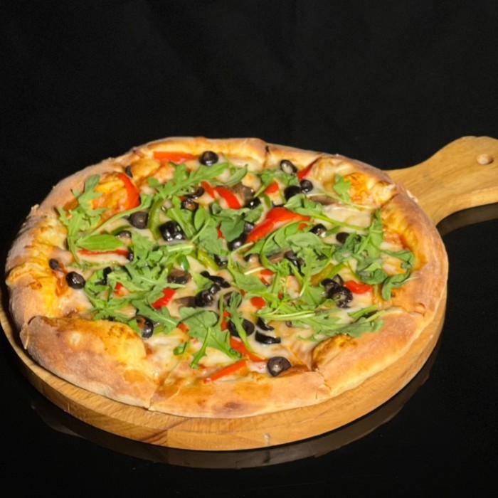 (285 سعرة حرارية)عجينة رقيقة ومخبوزة بعناية، مغطاة بصلصة الطماطم الإيطالية الطازجة، مع مزيج من الخضار الموسمية الطازجة مثل الفلفل، الزيتون، الفطر، والطماطم، وتعلوها طبقة من جبن الموزاريلا الذائب.