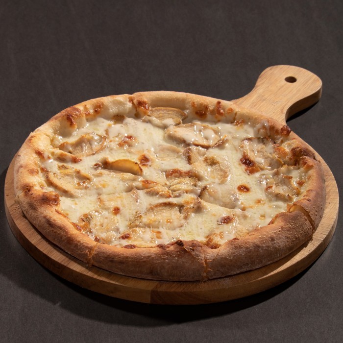 (213 سعرة حرارية)عجينة تُغطى بصلصة الرانش الكريمية، مع قطع دجاج مشوية متبلة، وجبن موزاريلا ذائب .