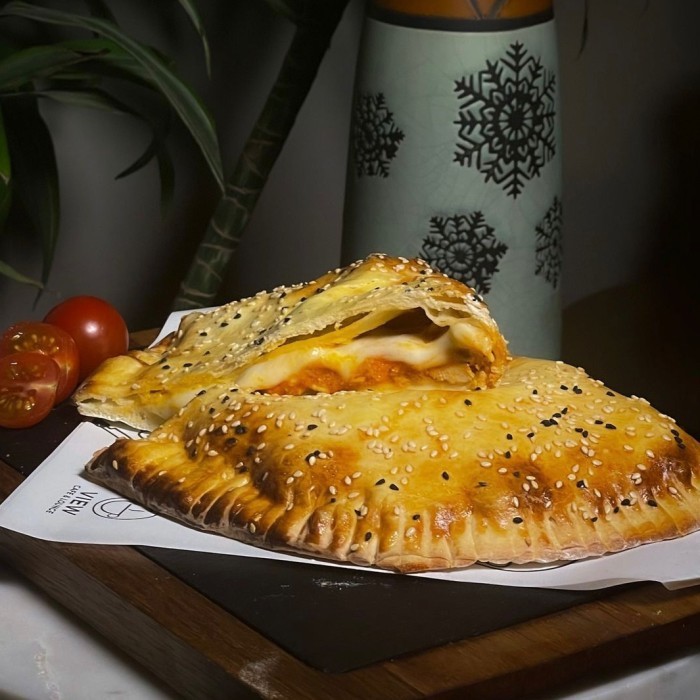 (415 سعرة حرارية)عجينة إيطالية مخبوزة على شكل نصف دائرة، محشوة بقطع دجاج متبلة بالأعشاب الإيطالية، مع صلصة الطماطم وجبن الموزاريلا الذائب. مزيج غني من النكهات يُقدم ساخناً